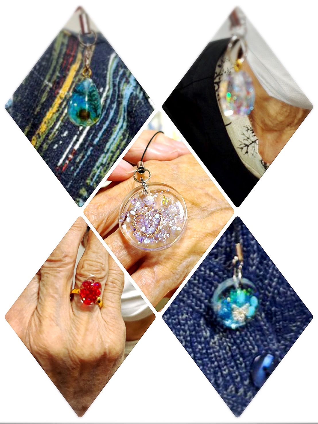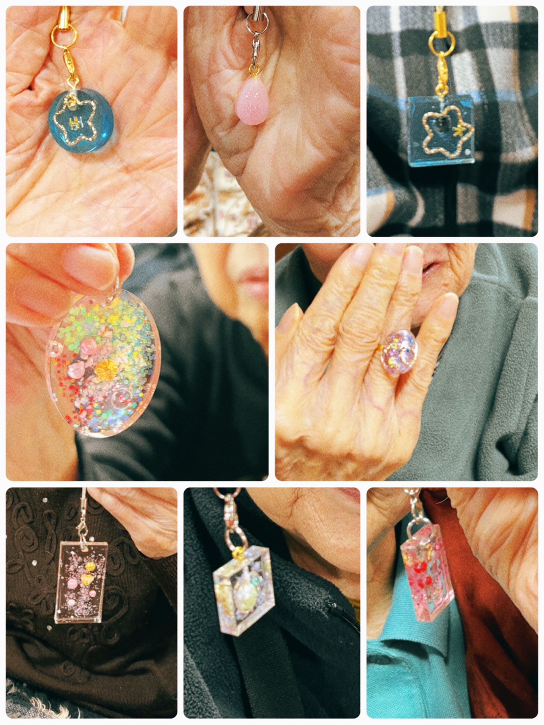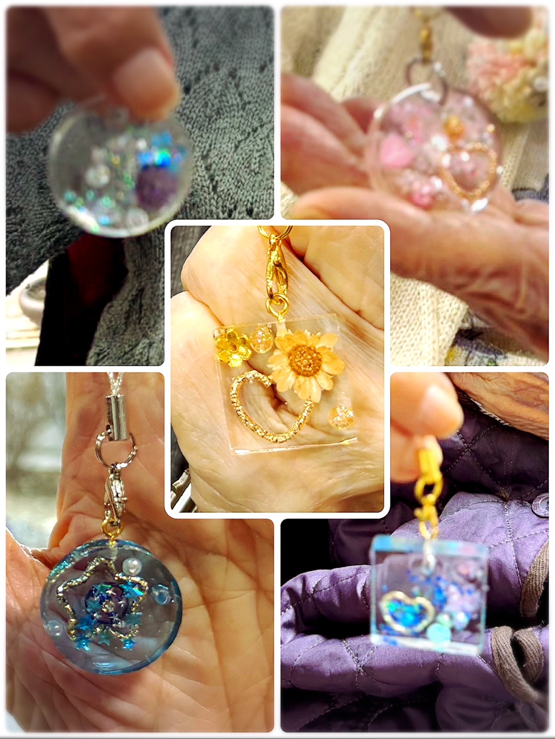 好きな形・色・装飾を選んでもらいレジンで固めキーホルダーや指輪を作りました☆彡