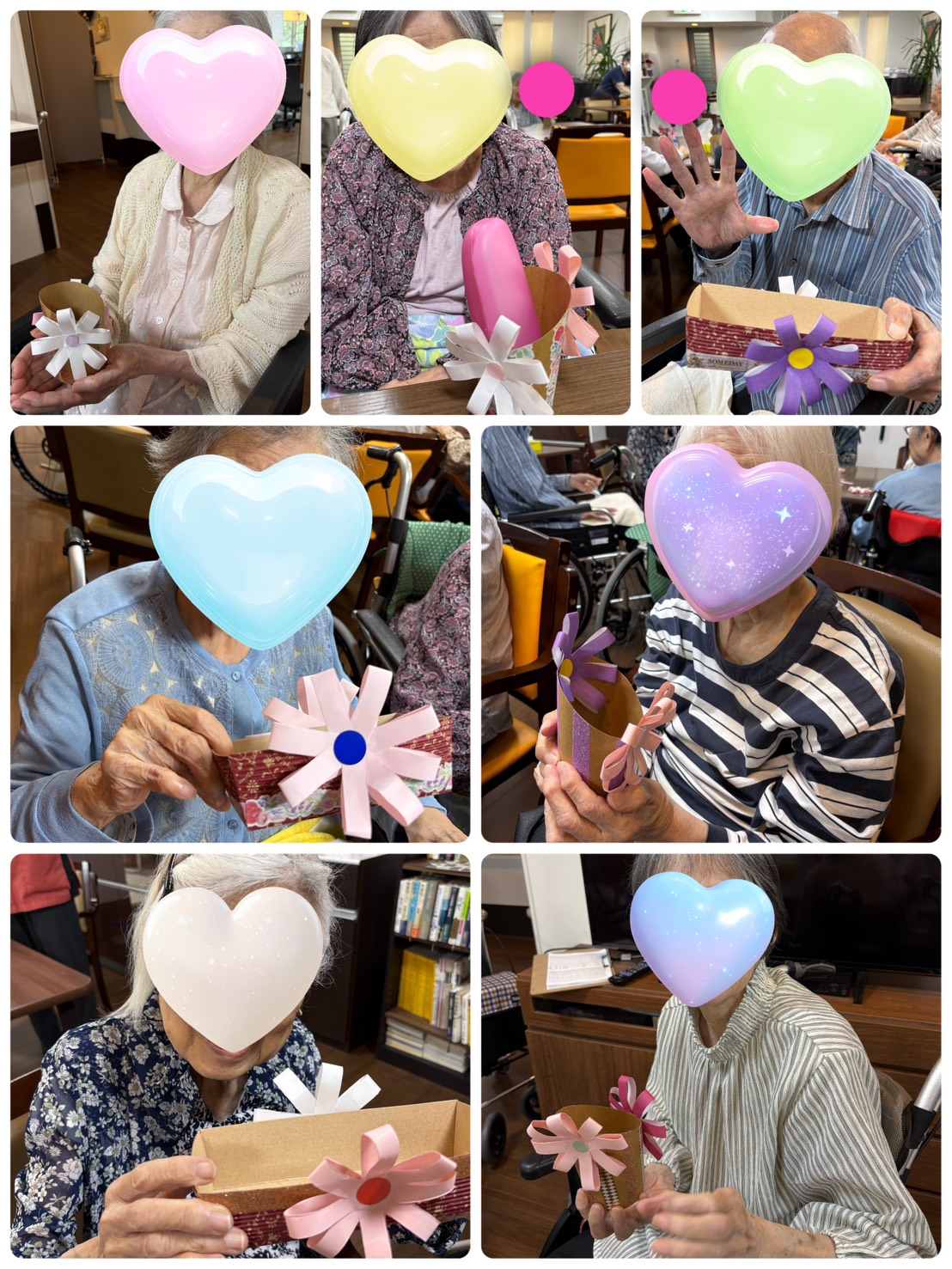 折り紙で作ったコスモスの色を選んでもらい花びらを作ってシールを貼り仕上げてもらいました!!