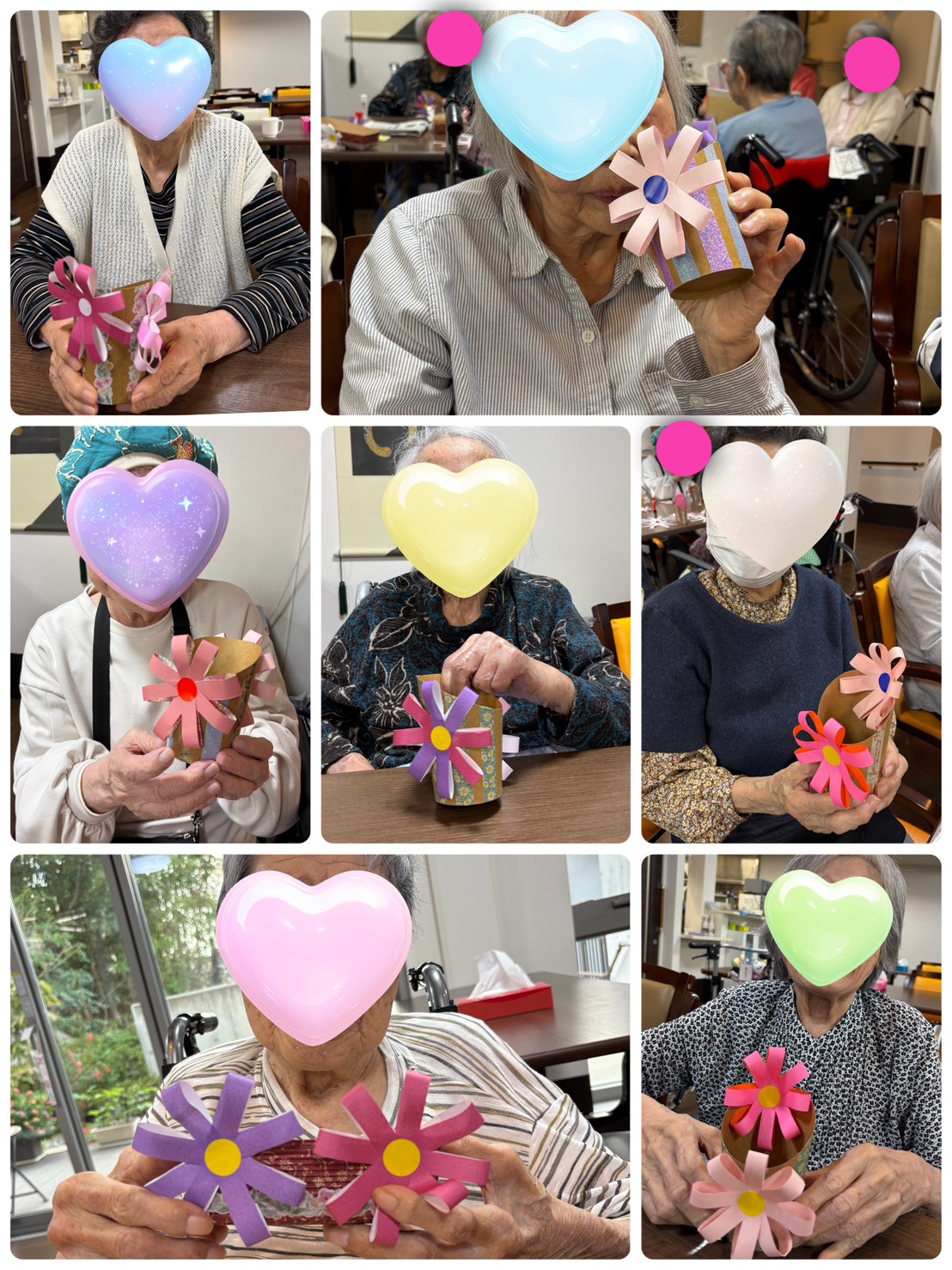 折り紙で作ったコスモスの色を選んでもらい花びらを作ってシールを貼り仕上げてもらいました!!