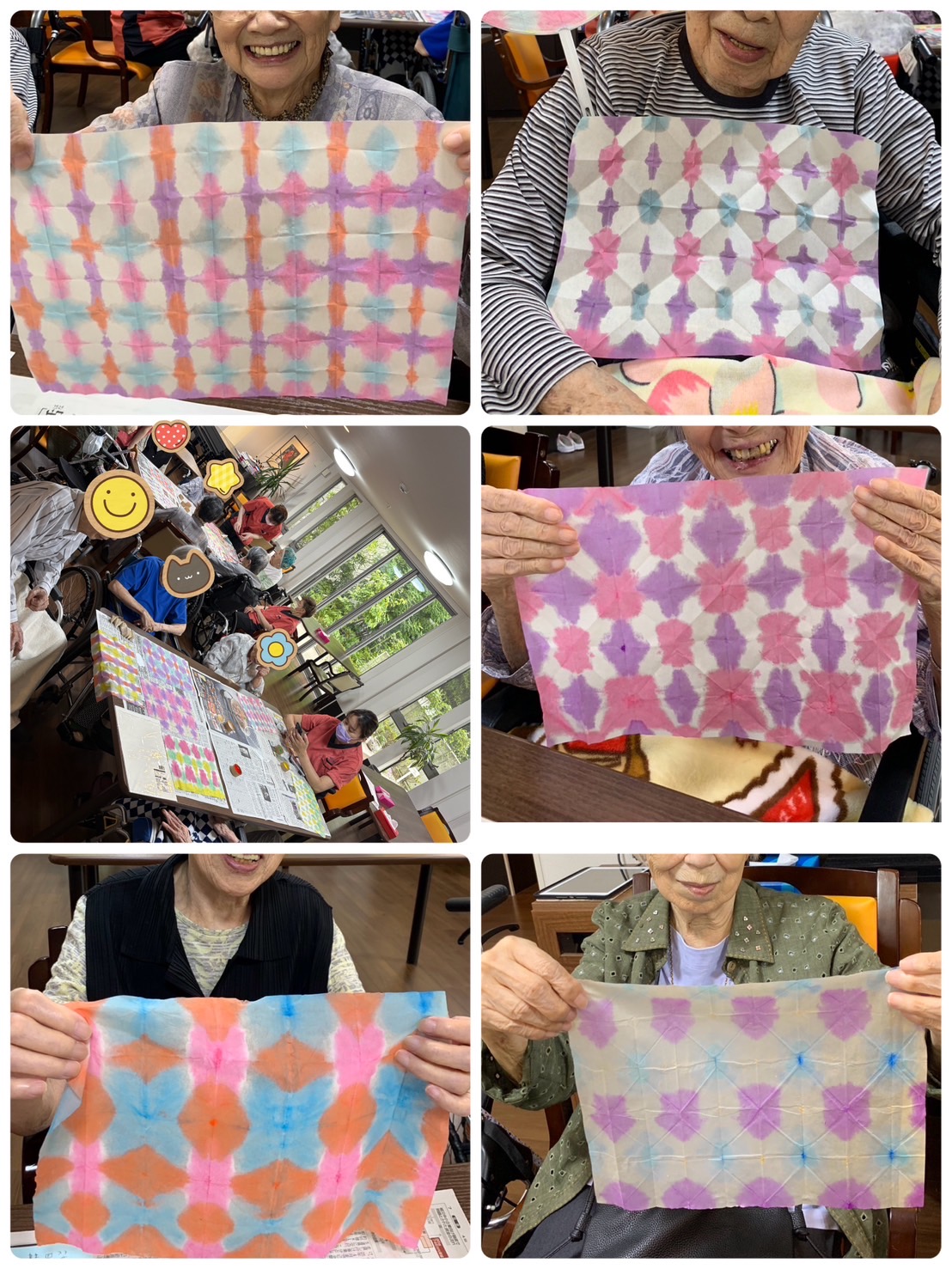 皆さんには納涼祭にむけて職員のレクリエーションで手作りのうちわを作ってもらいましたよ(^^♪
