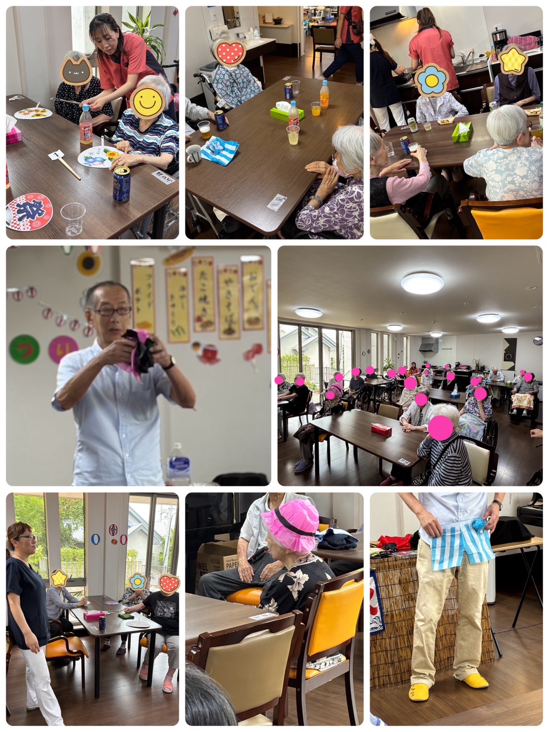 皆さんには納涼祭にむけて職員のレクリエーションで手作りのうちわを作ってもらいましたよ(^^♪